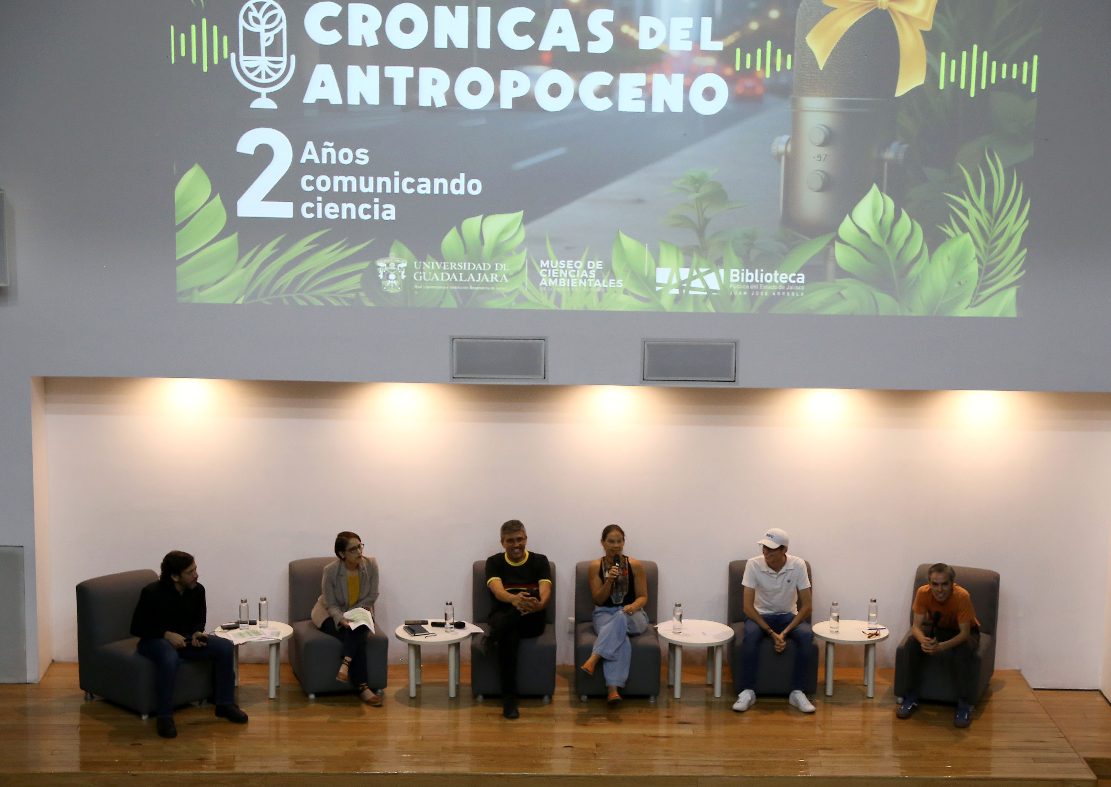 Uno de estos ejemplos es el podcast Crónicas del Antropoceno, una producción del Museo de Ciencias Ambientales (MCA) de la Universidad de Guadalajara (UdeG) que celebró su segundo aniversario con un episodio especial: llevó a cabo la grabación de uno de sus episodios en vivo desde el auditorio José Cornejo Franco de la Biblioteca Pública del Estado de Jalisco Juan José Arreola, en el que participaron como público invitado estudiantes de escuelas de la UdeG.