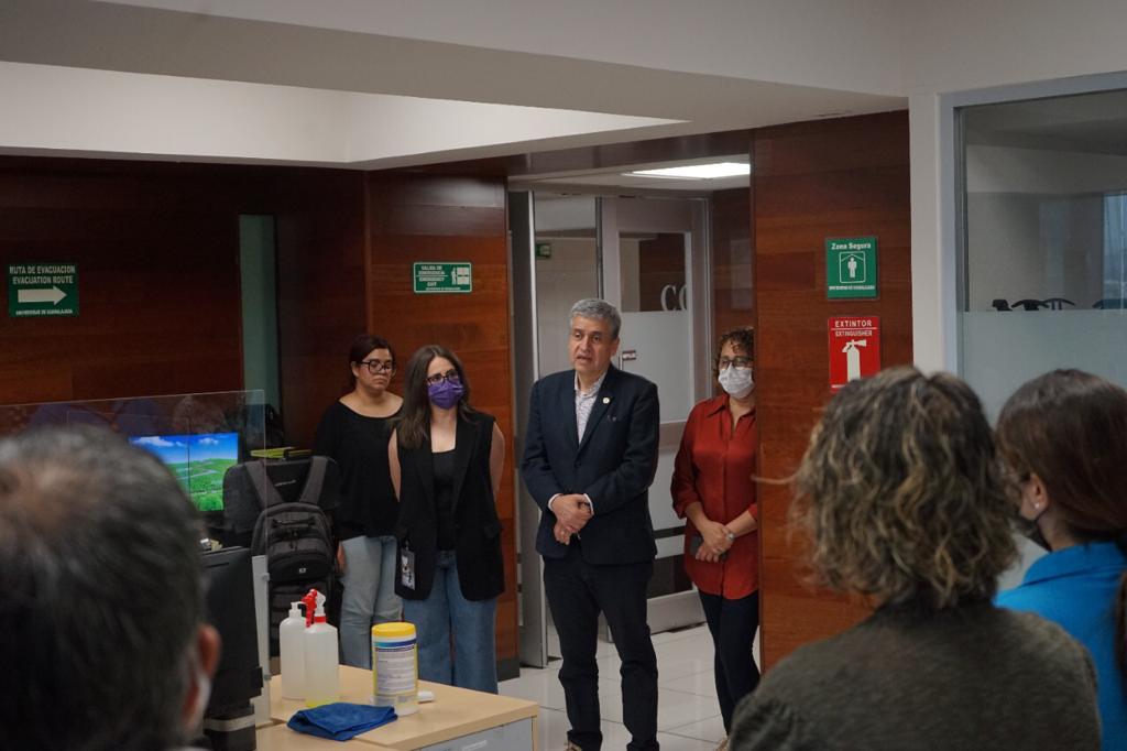 El día de hoy recibimos la visita del Vicerrector Ejecutivo, Dr. Héctor Raúl Solís Gadea, quien compartió un mensaje con todo el equipo de la Coordinación General de Investigación, Posgrado y Vinculación (CGIPV). Enfatizó el motivo por el cual las y los universitarios saldremos a defender a la máxima Casa de Estudios de Jalisco.