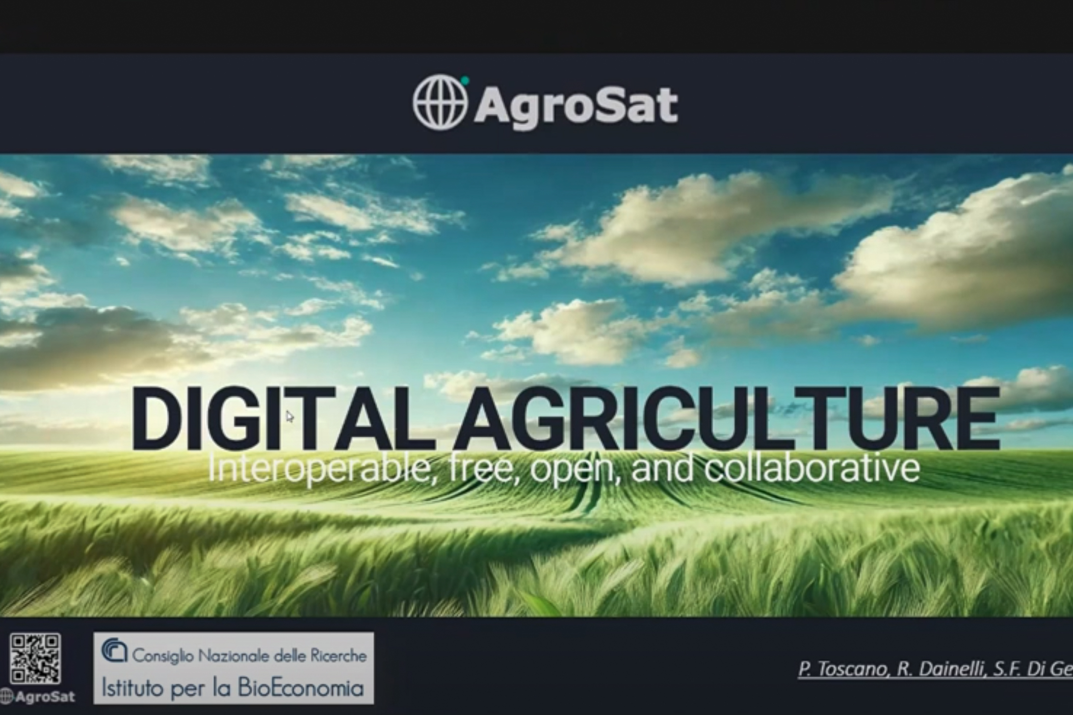 El doctor Piero Toscano, del Consejo Nacional de las Investigaciones de Italia (CNR), presentó AgroSat, una plataforma de código abierto desarrollada por el Instituto de BioEconomía del CNR (CNR-IBE). AgroSat utiliza Big Data y tecnologías IoT para apoyar la gestión agrícola sostenible, ofreciendo soluciones innovadoras para la agricultura del futuro.
