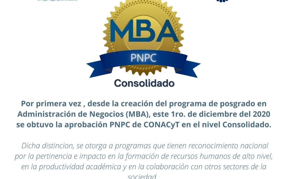 Según el Conacyt, el MBA alcanzó la distinción debido a los perfiles del profesorado, que cuentan con experiencia directiva en el campo profesional, investigación aplicada y formación de nivel internacional.