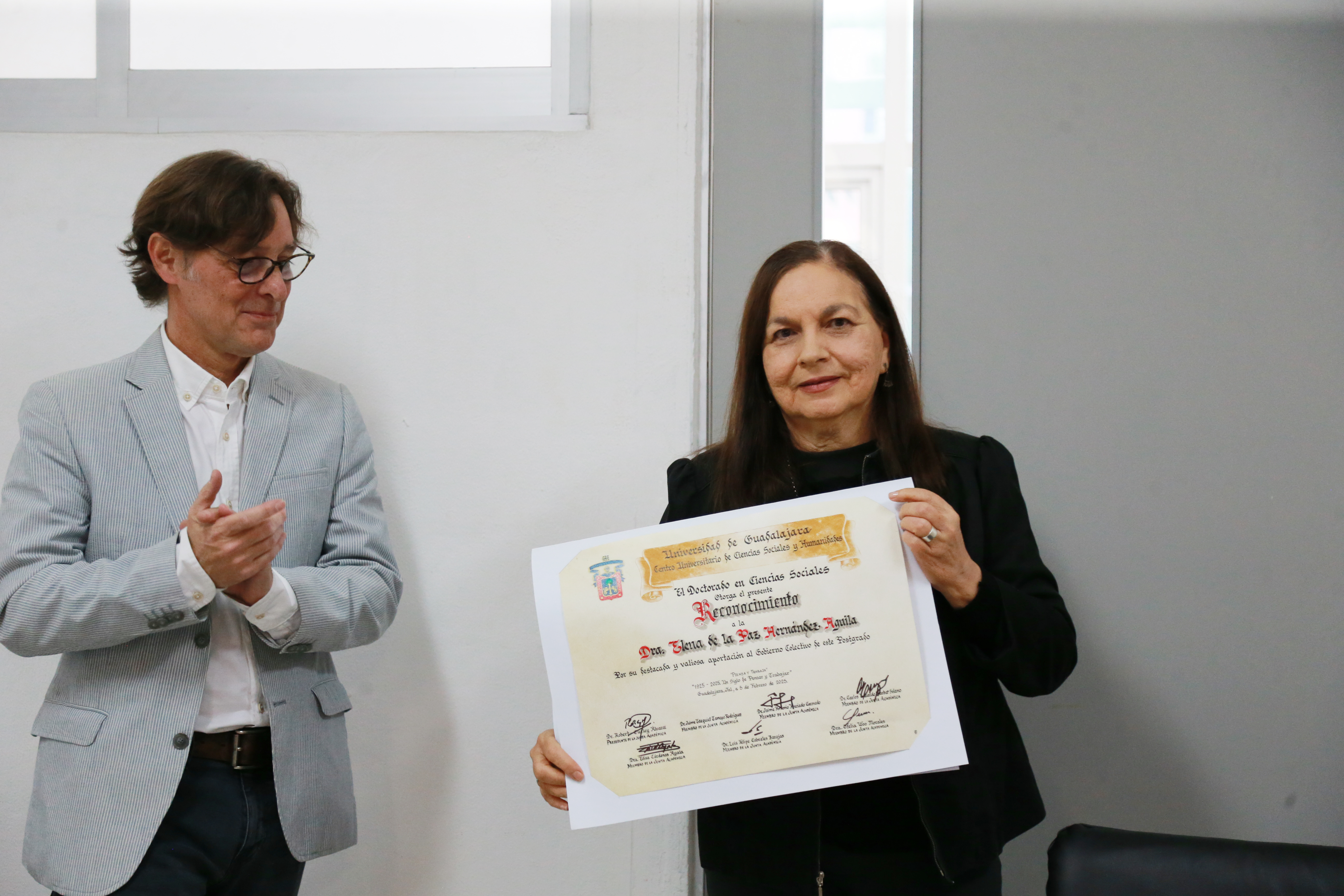 La comunidad de la División de Estudios Políticos y Sociales, del Centro Universitario de Ciencias Sociales y Humanidades (CUCSH) de la UdeG, reconoció el trabajo de cuatro décadas de la doctora Elena de la Paz Hernández Águila y del doctor Enrique Valencia Lomelí, docentes del doctorado en Ciencias Sociales del plantel.