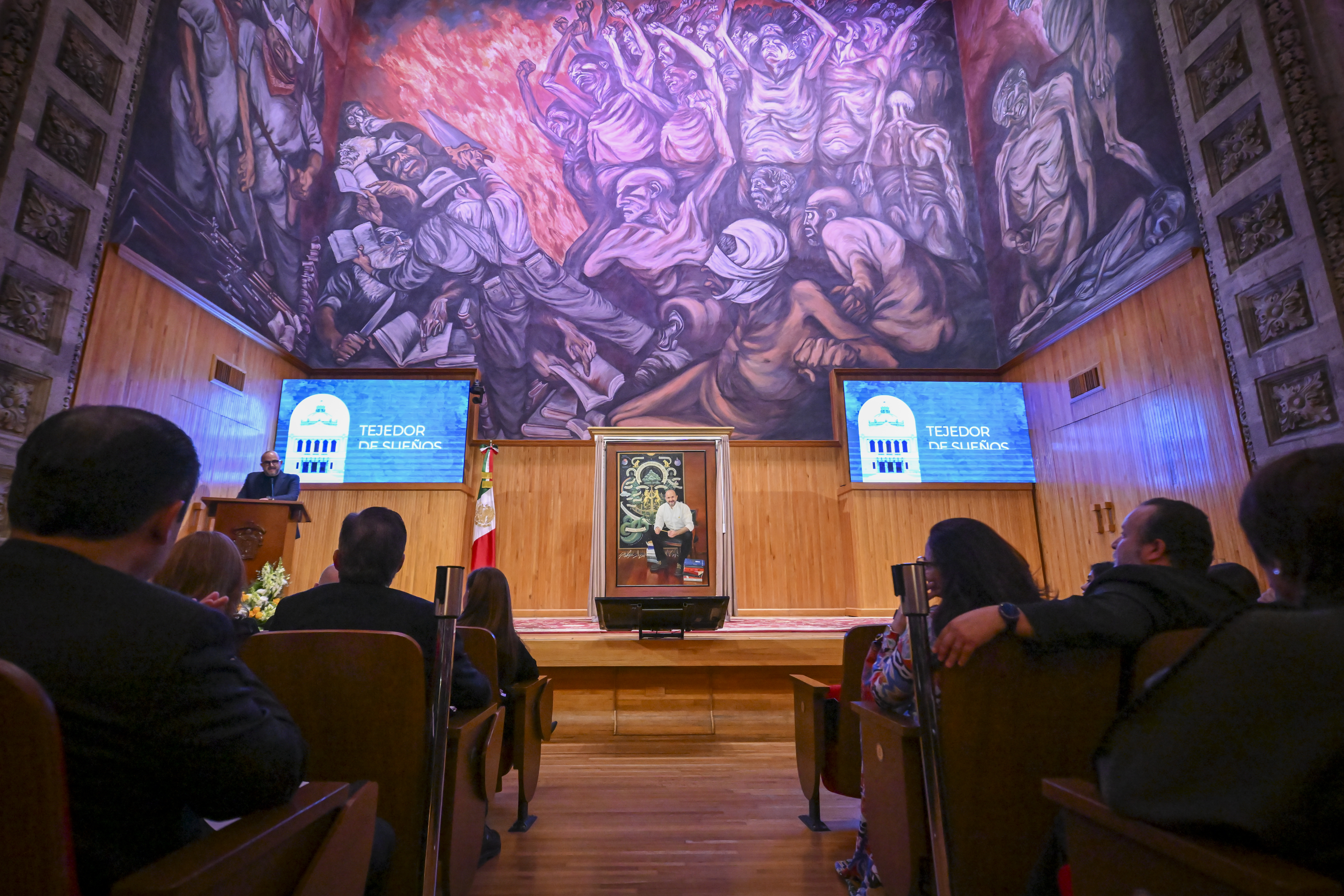 “Si el viaje se hace acompañado de una manada unida, resiliente, solidaria, muy pronto ese viaje representa millones de pasos caminando hacia el mismo lugar, y así se pueden cumplir 100 años y quiero aprovechar para festejar a la comunidad universitaria y agradecer que un día antes de que cumpla 100 años mi cuadro ya esté aquí”, dijo.