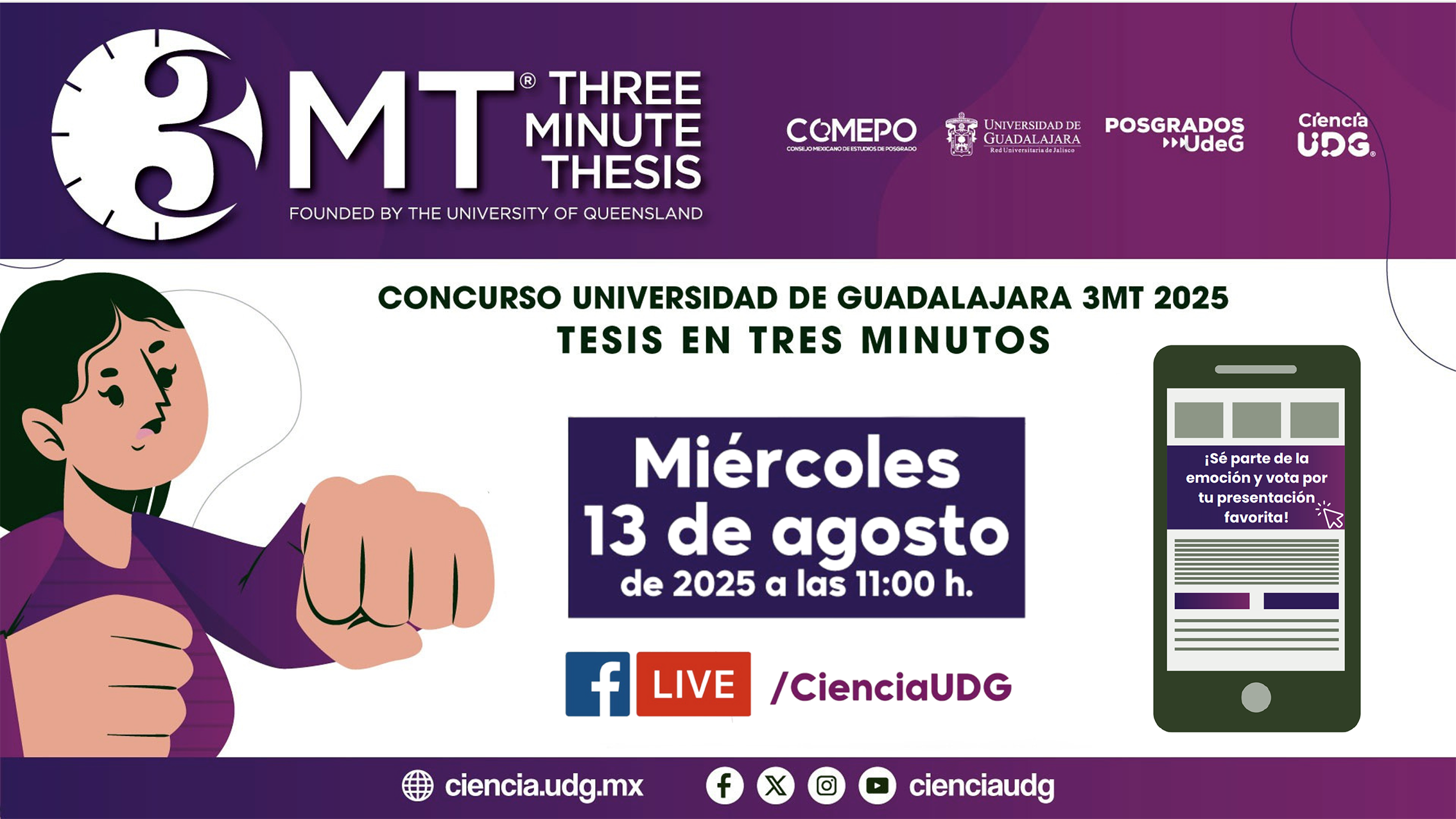 Tres minutos pueden ser suficientes para explicar una investigación doctoral y su impacto social. Ese es el reto que tendrán 50 estudiantes de todos los centros universitarios de la Universidad de Guadalajara (UdeG) que participarán en el “Concurso Universidad de Guadalajara 3MT”, que tendrá lugar el próximo 13 de agosto en el Conjunto Santander de Artes Escénicas (CSAE).