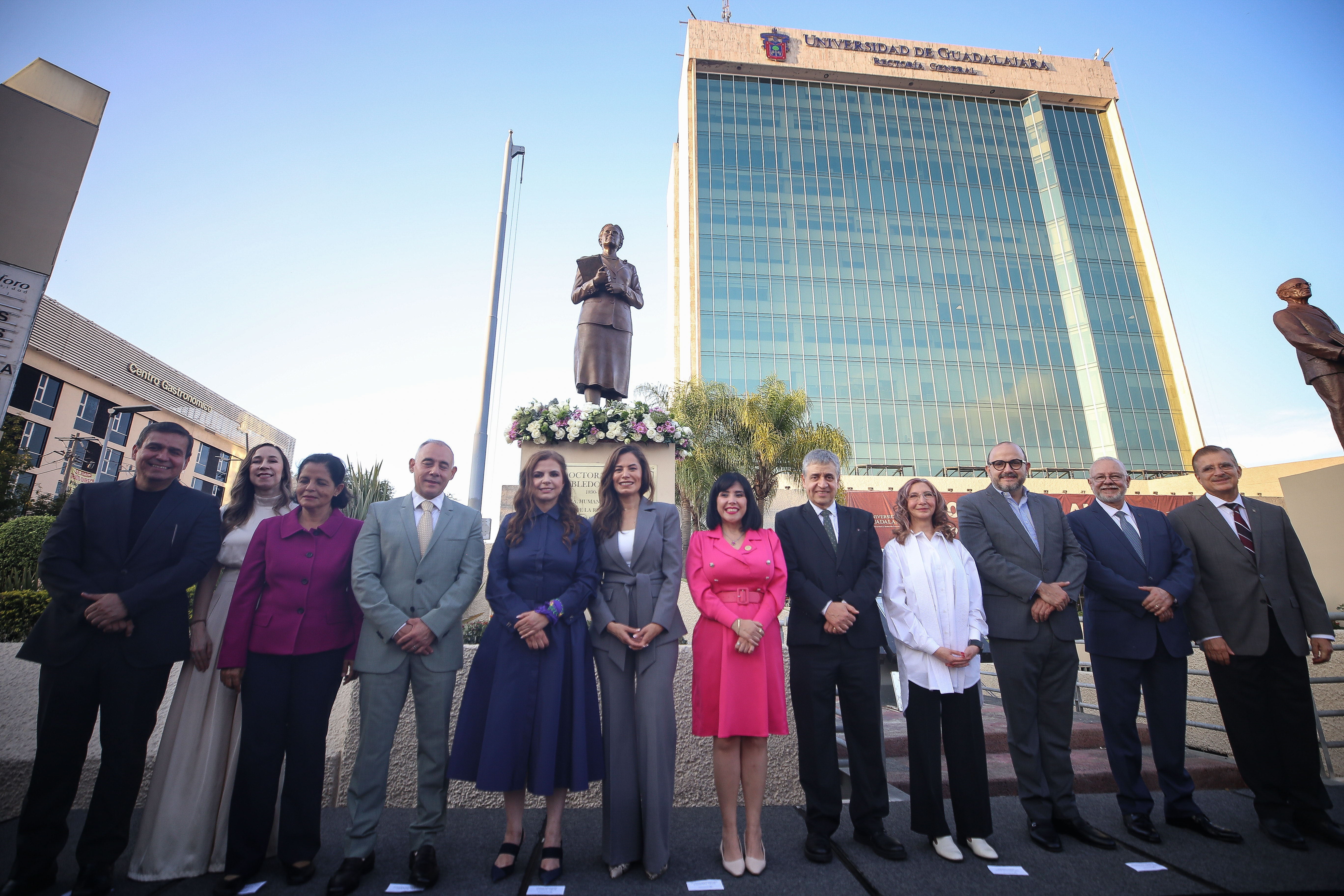“En el primer centenario de la Refundación develamos esta estatua de bronce de la doctora en un acto de justicia, memoria y resistencia al olvido y como reconocimiento a su legado y contribución a la cultura y educación del Estado de Jalisco”, precisó.