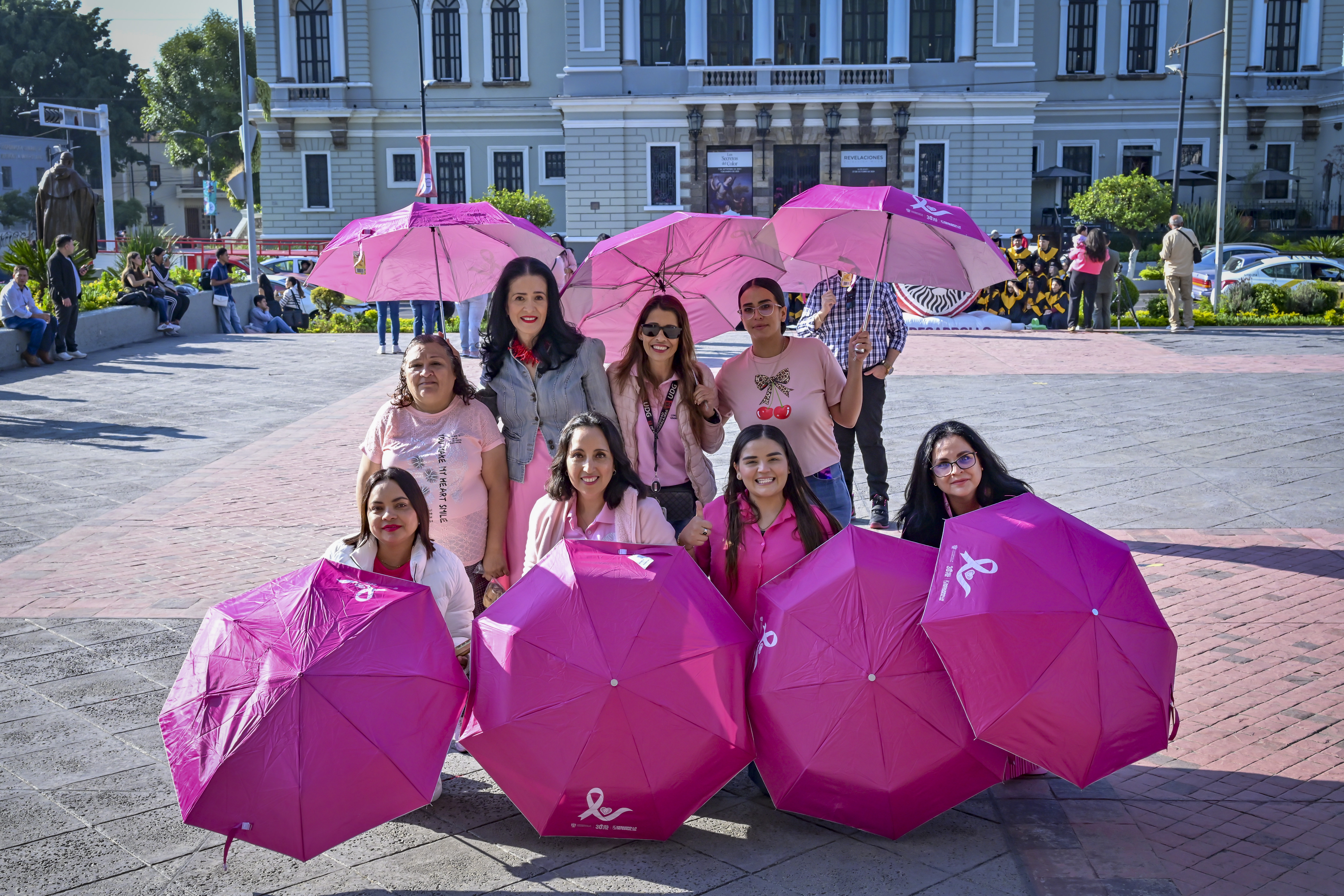 Aproximadamente 350 personas, entre personal académico y administrativo de esta Casa de Estudio, se reunieron en la explanada con un paraguas rosa en mano y configuraron un emblemático “lazo humano”, mismo que podía ser visualizado desde las alturas.